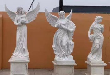 西方天使女孩漢白玉雕塑