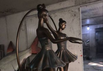 仿銅玻璃鋼戶外園林跳舞女孩裝飾品