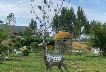 幾何造型的鹿雕塑,以簡潔硬朗的不銹鋼面構建輪廓,棱角分明,卻又巧妙呈現鹿的靈動,像在花園邊的那組,低頭與昂首的動態,打破傳統雕塑的柔和,以現代藝術語言,呼應周邊綠植繁花,碰撞出時尚與自然的火花。還有用白色金屬絲編織的鹿,線條交織成鹿的身軀,鹿角延伸出枝葉蝴蝶,把鹿與自然元素融合,似在講述生態共生的童話,讓觀者感受自然與藝術的纏綿。