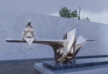 這是一件銅雕藝術景觀雕塑,以傾斜的類似水波造型為底座,上面是一艘載有一人的小船。通過簡潔的造型,營造出靜謐、悠遠的意境,展現出獨特的藝術美感與哲學思考。