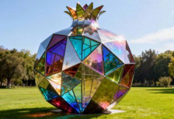 這組不銹鋼景觀雕塑以抽象化的草莓為核心意象,通過(guò)對(duì)自然形態(tài)的解構(gòu)與重塑,構(gòu)建起傳統(tǒng)與現(xiàn)代、柔軟與堅(jiān)硬、微觀與宏觀的多重對(duì)話。在材質(zhì)選擇上,拋光不銹鋼的冷冽光澤與鏡面反射,消解了草莓作為自然果實(shí)的柔軟與甜美,代之以工業(yè)時(shí)代的理性與冷峻。雕塑表面密集的孔洞肌理,既是對(duì)草莓表皮顆粒的抽象提煉,也隱喻著城市建筑的肌理與社會(huì)網(wǎng)絡(luò)的聯(lián)結(jié),讓自然符號(hào)在公共空間中獲得了全新的當(dāng)代解讀。作為景觀雕塑,它不僅是視覺(jué)焦點(diǎn),更是公共參與的載體。觀眾可通過(guò)觸摸、觀察與互動(dòng),感受金屬表面溫度的變化與光影的流動(dòng),從而在日常場(chǎng)景中重新審視自然與城市的關(guān)系。這種抽象表達(dá),讓草莓從具象的水果升華為關(guān)于生命、記憶與都市文明的哲學(xué)思考。
